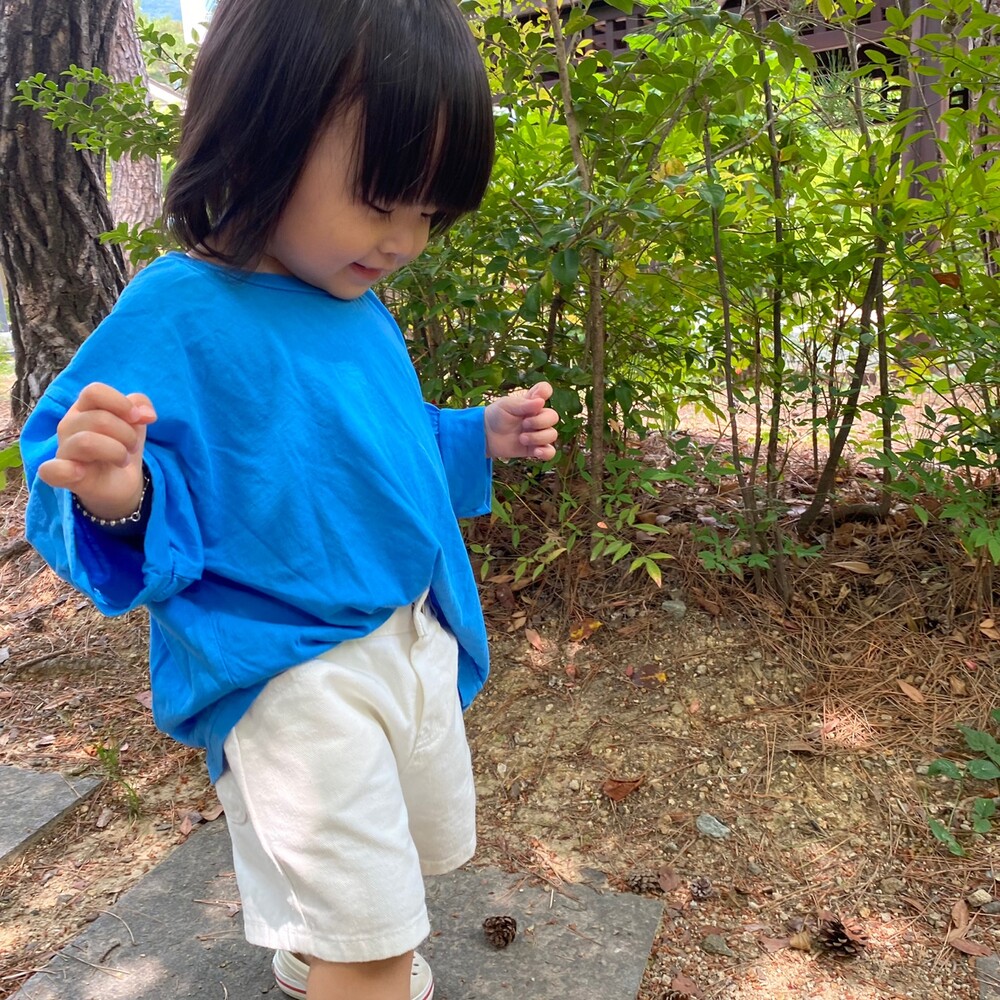 흰반바지랑 코디해주니 티셔츠 색상이 더 돋보여서 예뻤어요