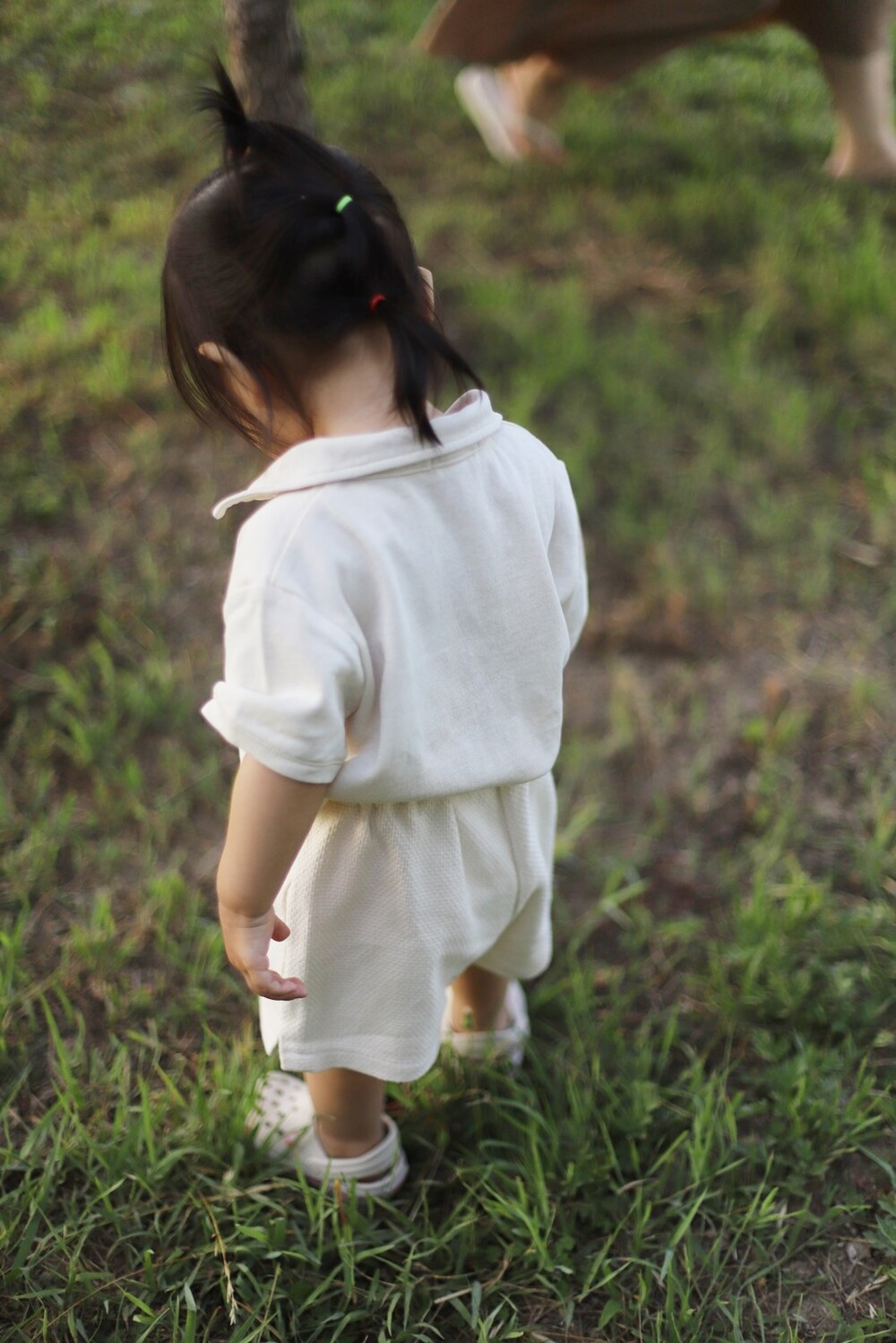 여름에는 면 반바지와 함께 시원하게 코디해줬다가